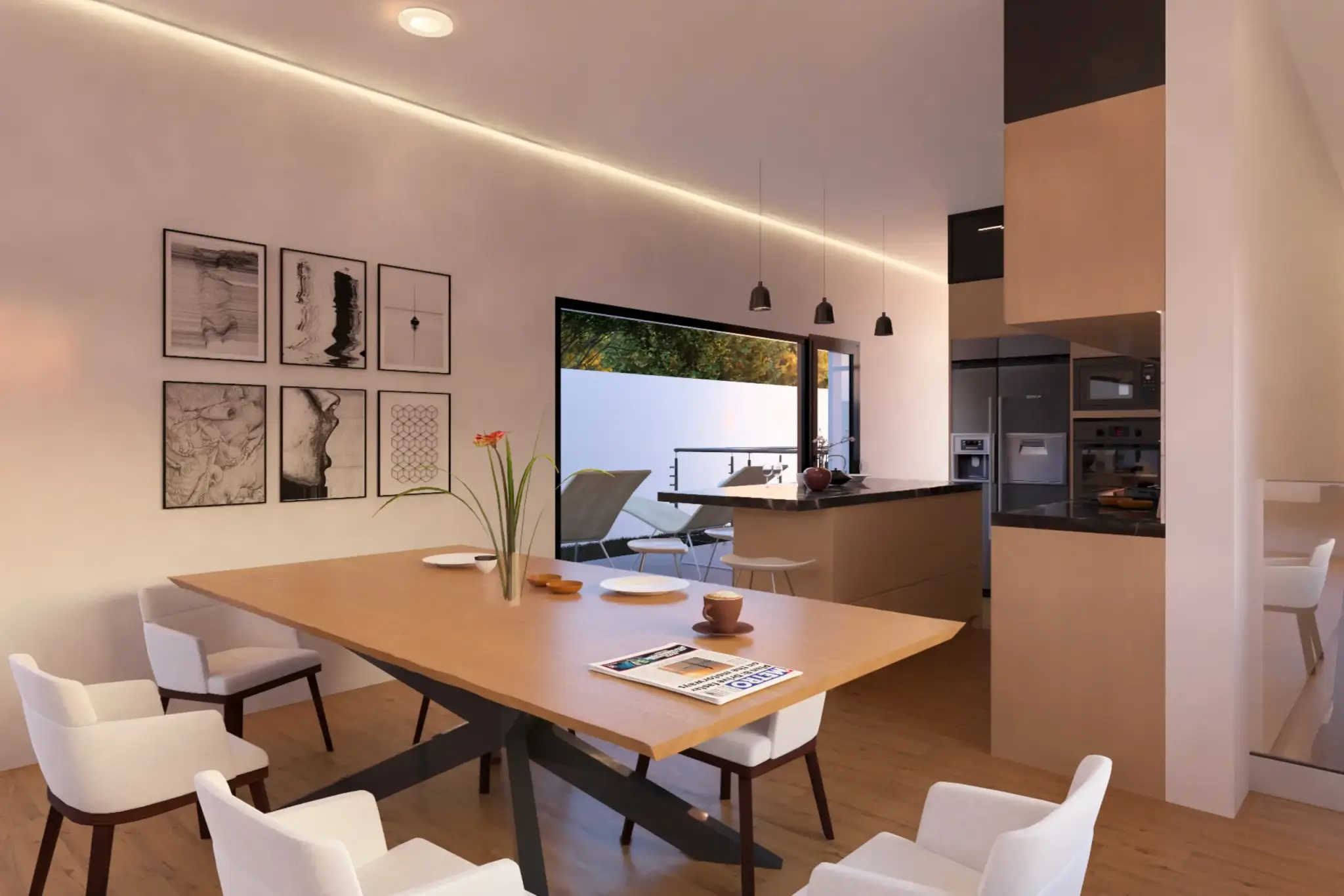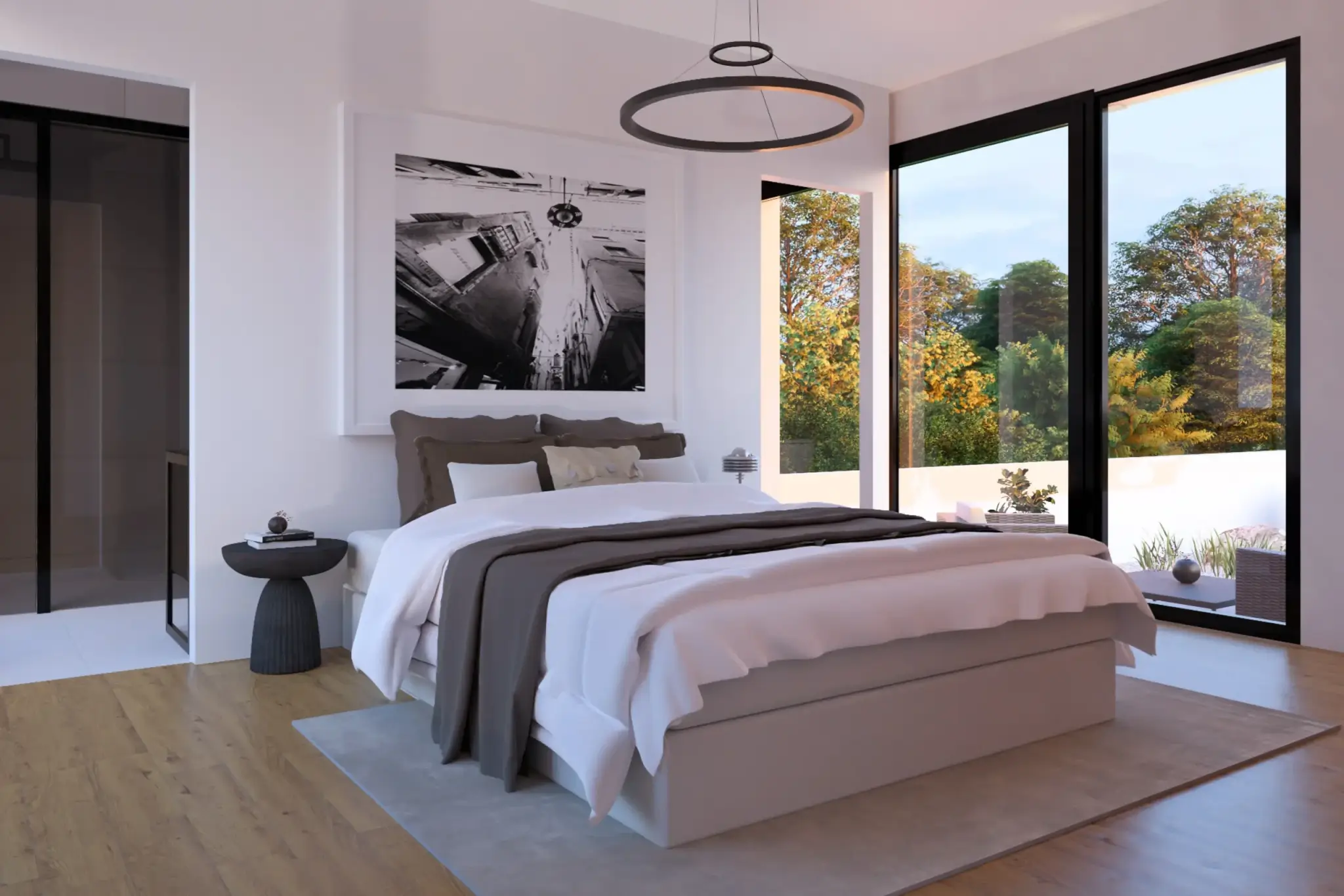 Con más de 100m2 repartidos entre el salón principal, una funcional lavandería y una terraza que invita al relax, el verdadero tesoro de este proyecto es, sin duda, el espectacular patio inglés. Aquí, la belleza de la naturaleza se entrelaza armoniosamente con la elegancia minimalista japonesa, creando un espacio único donde la serenidad y el estilo se fusionan en perfecta armonía.
